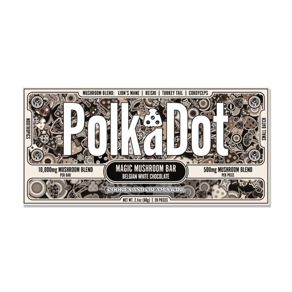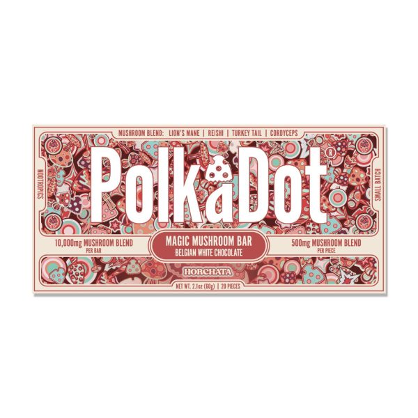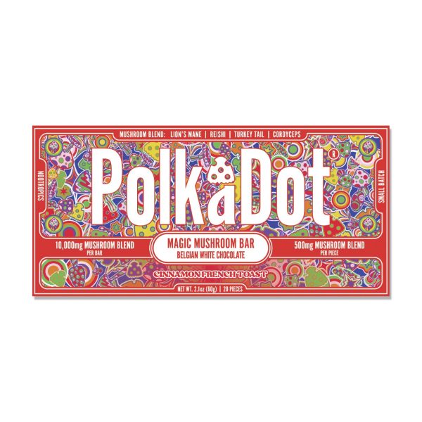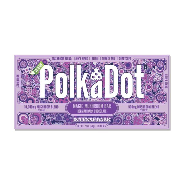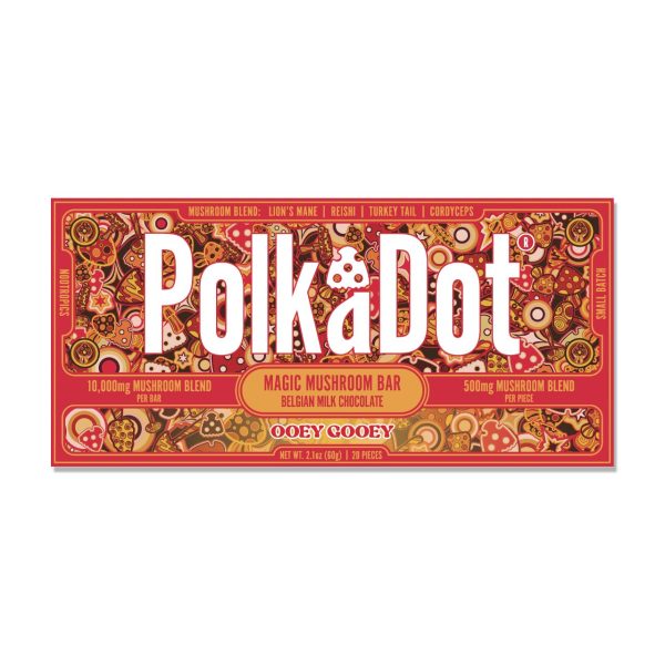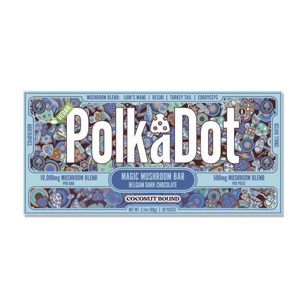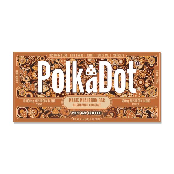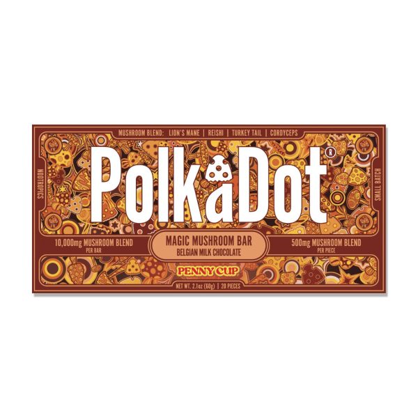 Polk A Dot is the most famous psychedelic mushroom brand and we bring you a blend of Amanita Muscaria and their proprietary Magic Mushroom Blend. Each 10,000mg bar has 20 individually divided pieces of 500mg which contains 7.5mg of Muscimol Isolate and 250mg blend of Reishi, Cordyceps, Chaga, Lion’s Mane, Maitake, Turkey Tail, Shiitake, and King Trumpet.
